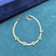 • Each element consists of a central ring or loop from which a cluster of three small, dangling or fixed charms/beads hangs. These charms or beads appear to have a light greenish-blue or mint green color.