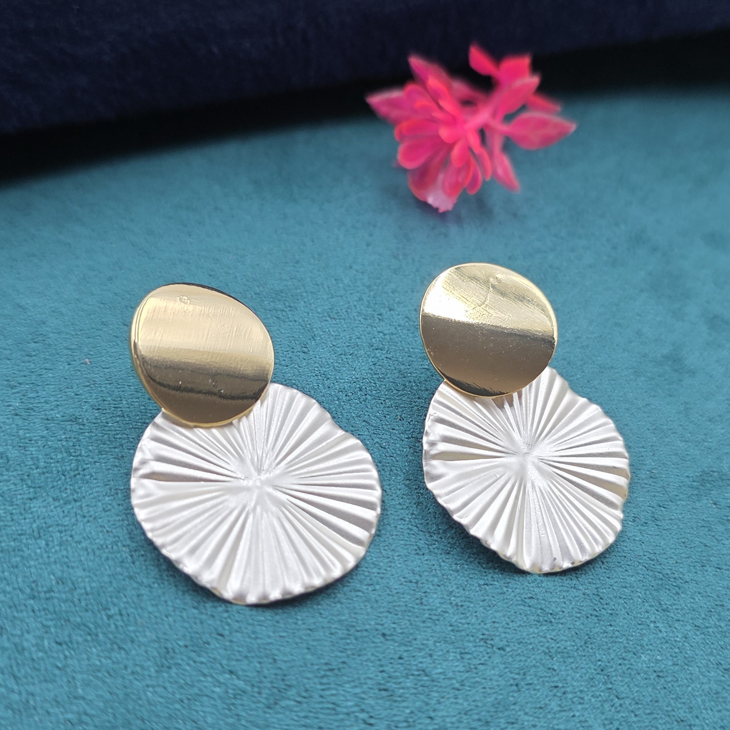 Stud/Top: The top part is a small, smooth, polished gold-toned disc that would sit on the earlobe.