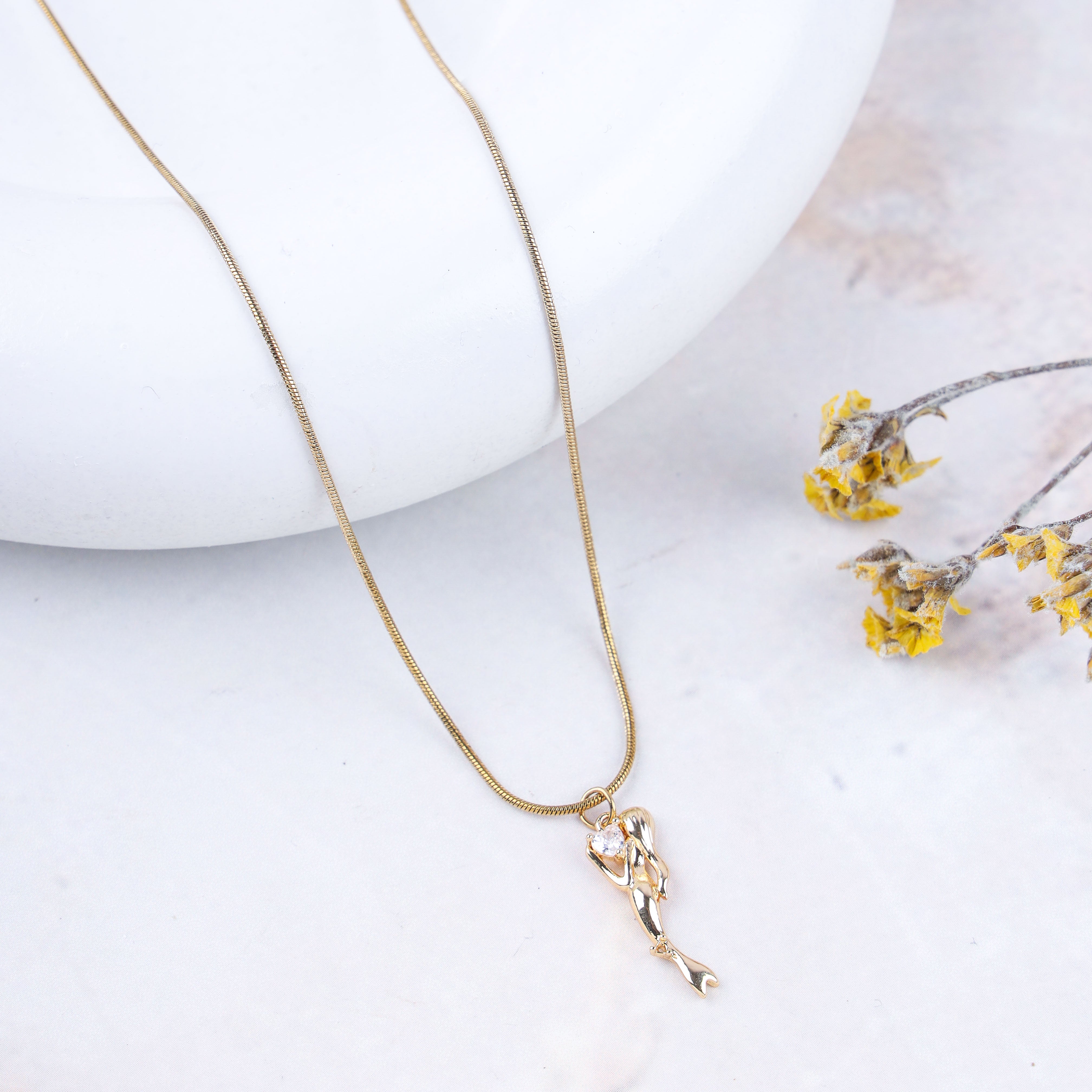 Siren's Grace Necklace captures the allure of the ocean with its fluid, elegant design. This piece features carefully selected gemstones that shimmer with an ethereal quality, reminiscent of sea-inspired mystique. The necklace showcases expert craftsmanship with a refined silhouette that complements both contemporary and classic aesthetics. Perfect for those who appreciate jewelry that tells a story, this necklace serves as a sophisticated statement piece for special occasions or elevated everyday wear. The balanced proportions ensure comfortable wear while maintaining its striking visual impact.