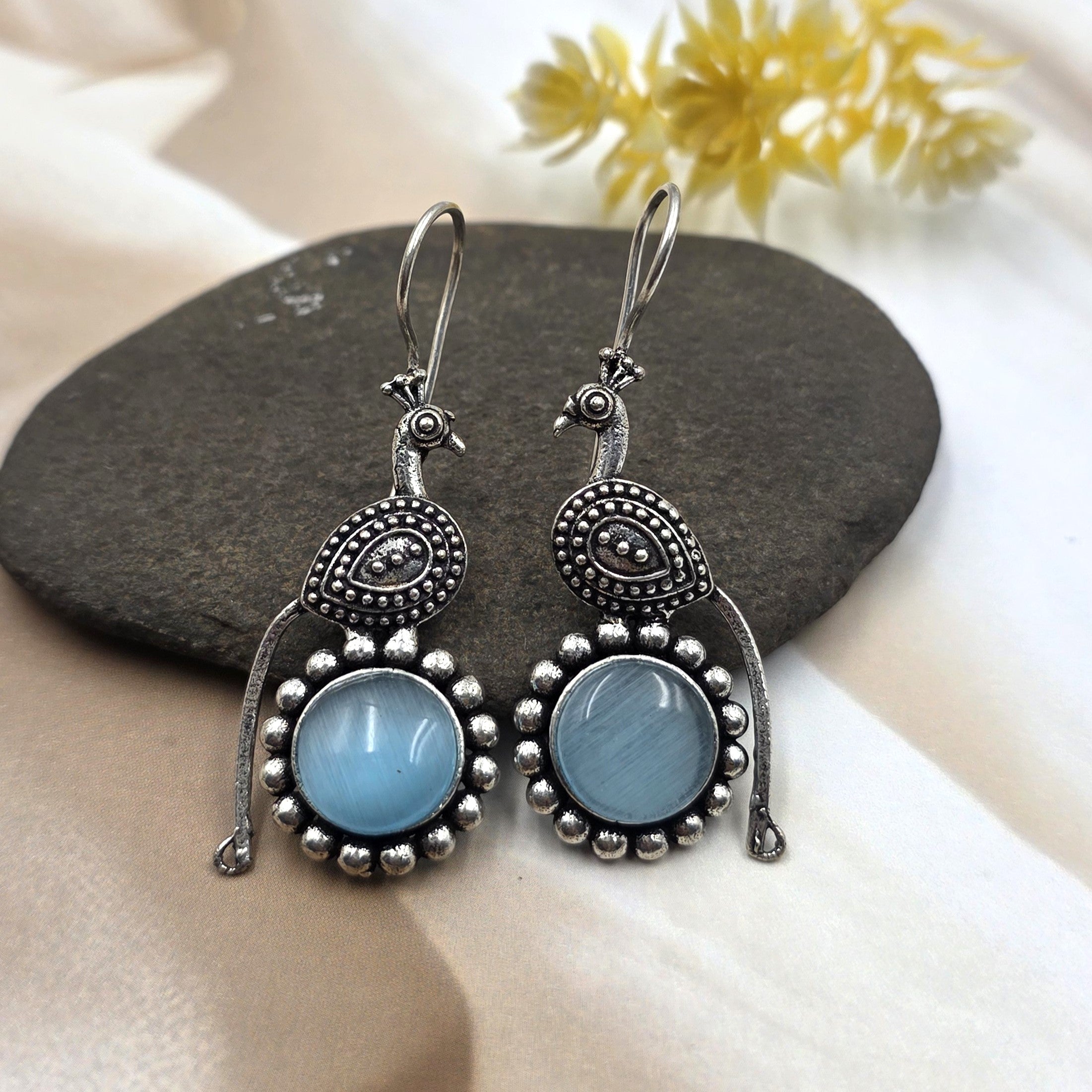 Design: The earrings have an appealing oxidized or antique silver finish, giving them a traditional or ethnic look.