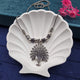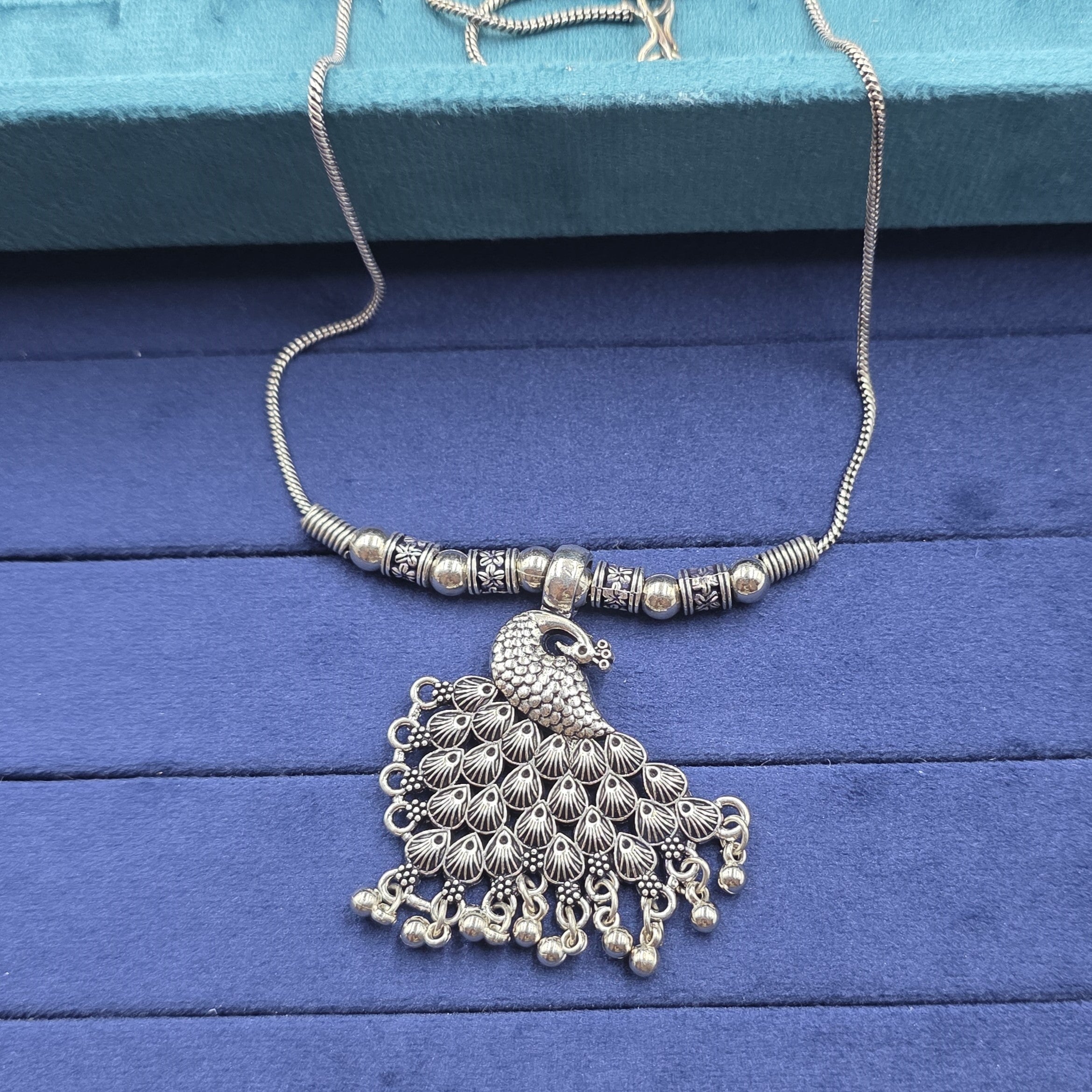 oxidized silver or silver-tone metal necklace peacock pendant.