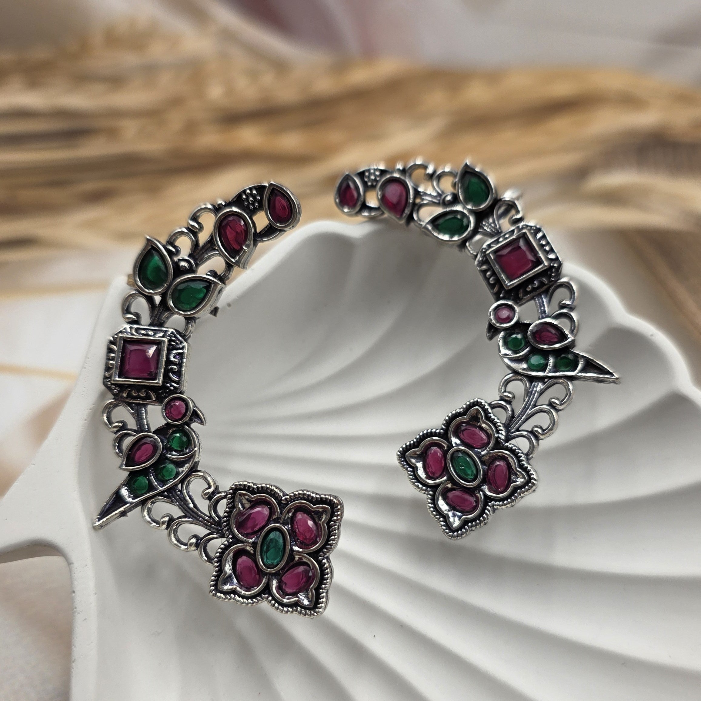 Elegant Oxidized Silver Ear Cuffs