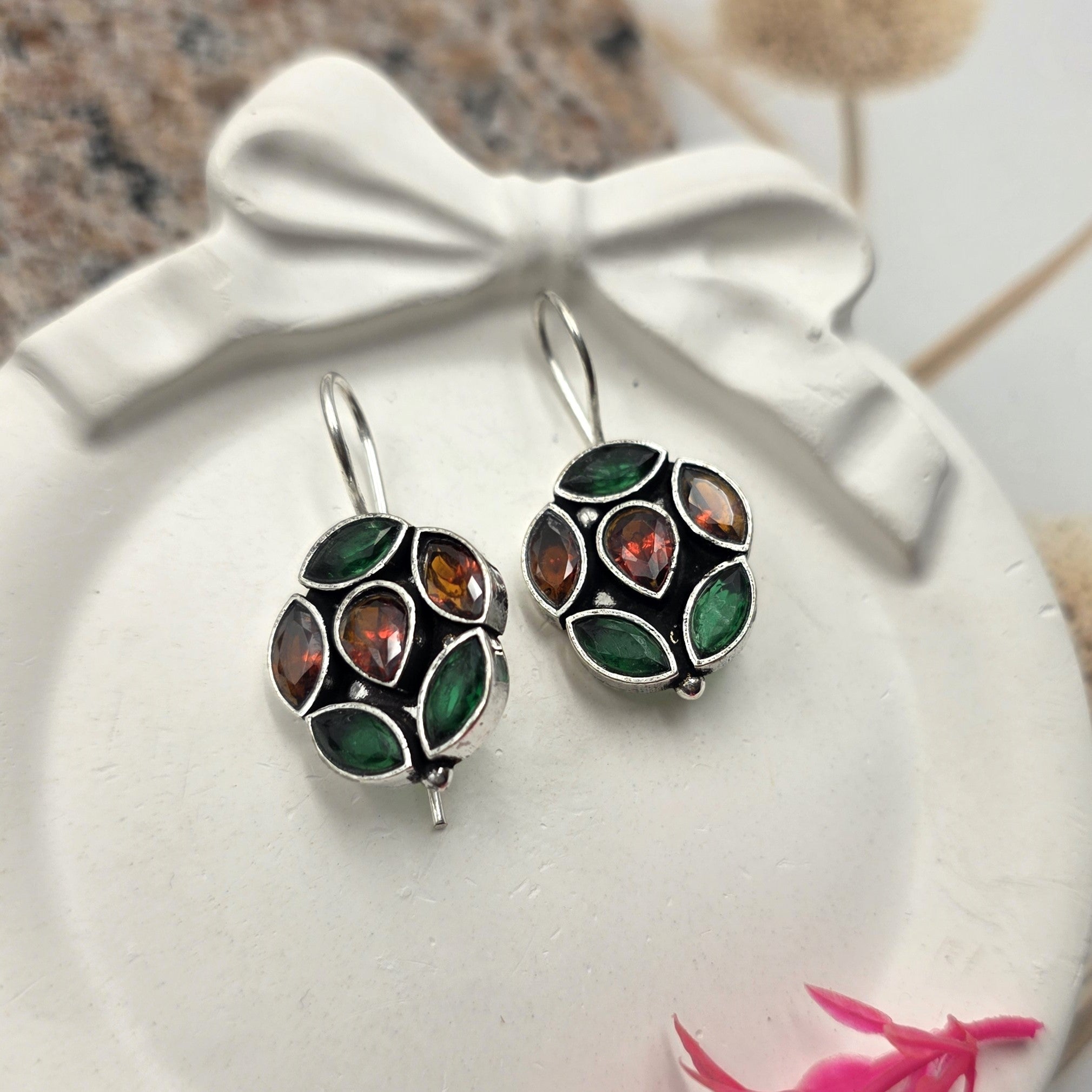 Dangle green stones earrings