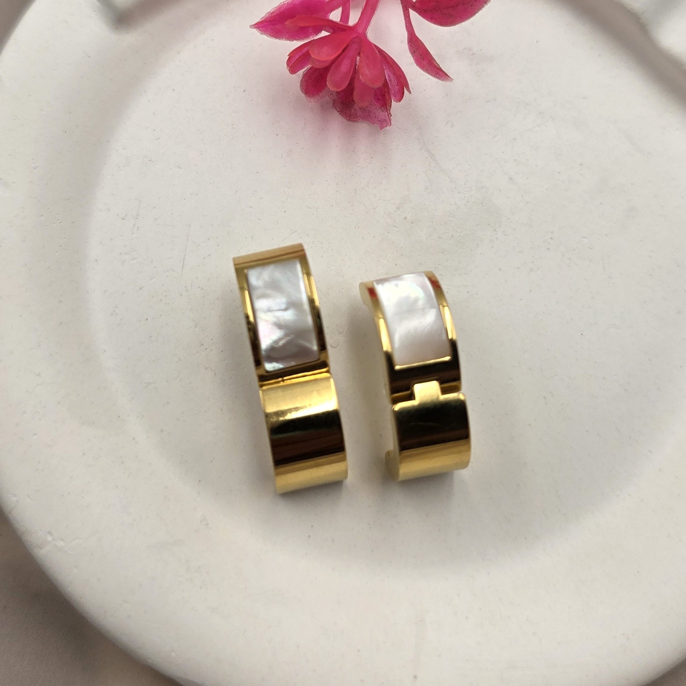 The design is modern, elegant, and luxurious, blending the warmth of gold with the sophisticated glow of natural shell.