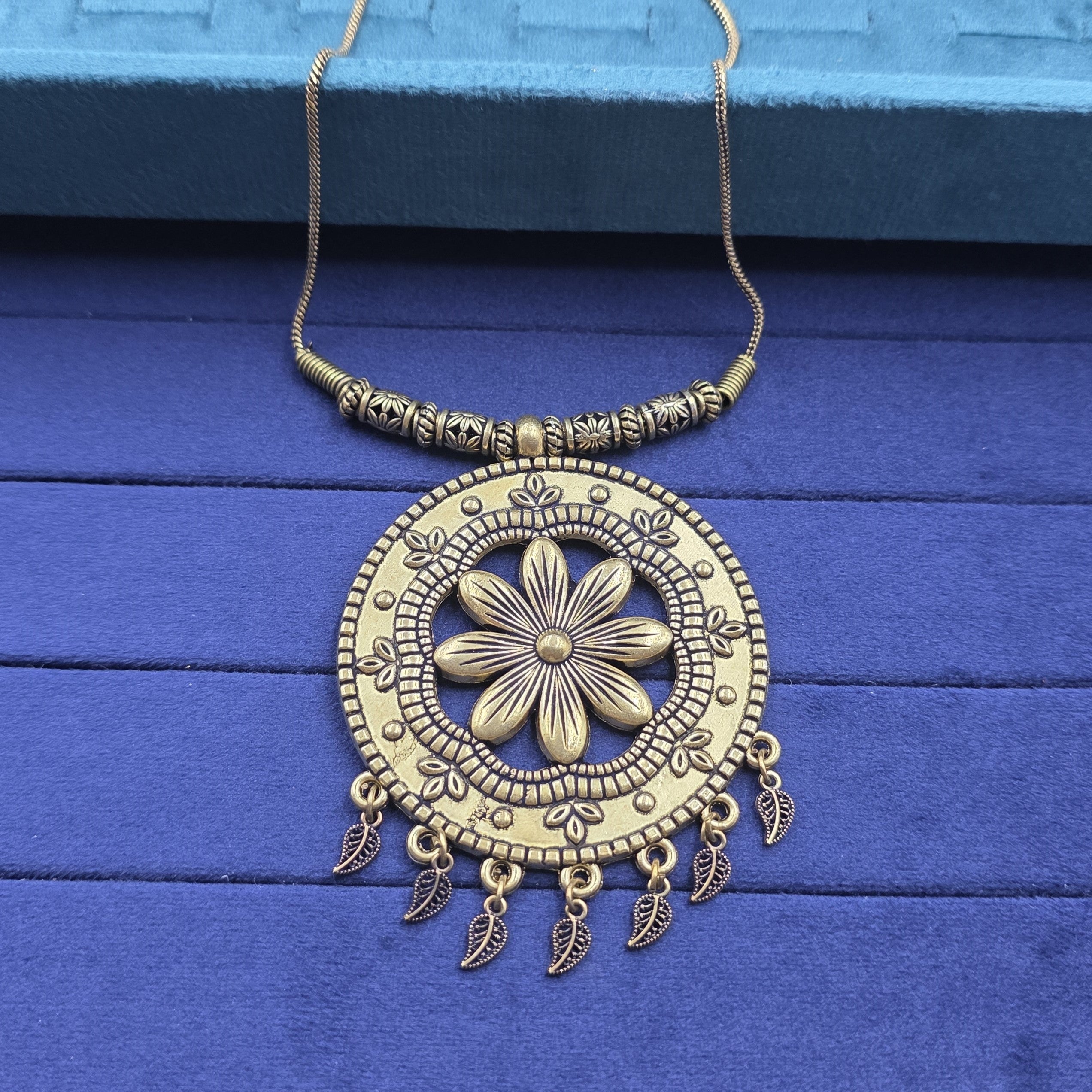 oxidized antique gold or bronze-tone finish six-petal flower motif